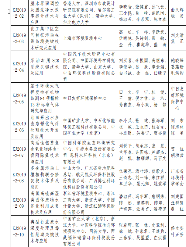 附:2019年度环境保护科学技术奖拟授奖项目名单